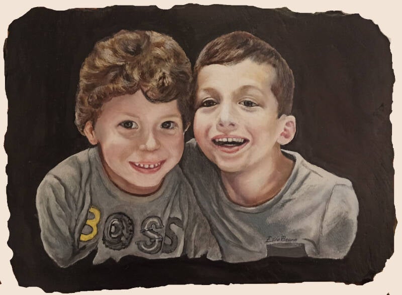 Giovanna e Andrea. Olio su ardesia. 25x35